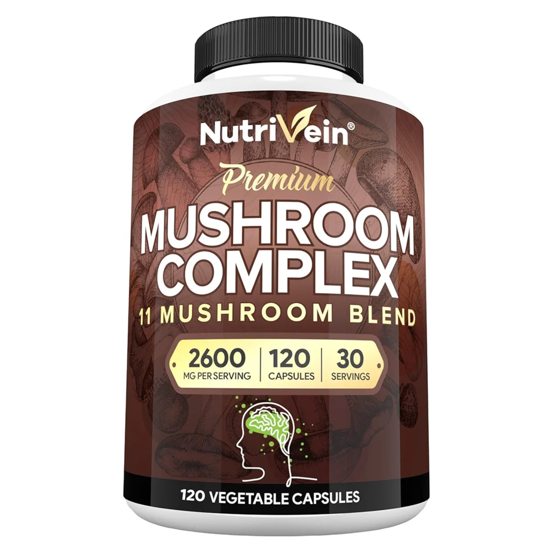 کپسول کمپلکس ۱۱ قارچ دارویی نوتریوین ۲۶۰۰ میلی‌گرم – تقویت سیستم ایمنی، تمرکز و انرژی طبیعی، ۱۲۰ کپسول گیاهی