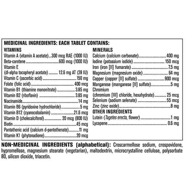 فرمول این مولتیویتامین شامل ویتامینهای گروه B برای افزایش انرژی و کاهش خستگی، آهن برای پیشگیری از کمخونی، کلسیم و ویتامین D برای سلامت استخوانها، و آنتیاکسیدانهایی مانند ویتامین C و E برای حمایت از سیستم ایمنی است.