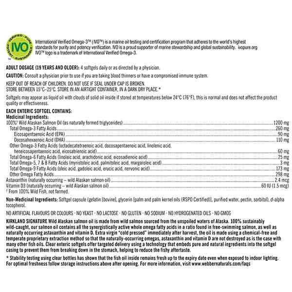 روغن ماهی سالمون وحشی آلاسکا Kirkland Signature یک مکمل حاوی اسیدهای چرب ضروری امگا ۳ است که از ماهی سالمون صیدشده در آبهای سرد و پاک آلاسکا تهیه میشود. این منبع طبیعی به دلیل کیفیت بالاتر و ترکیب متعادل اسیدهای چرب، از محبوبترین منابع امگا۳ در جهان محسوب میشود.