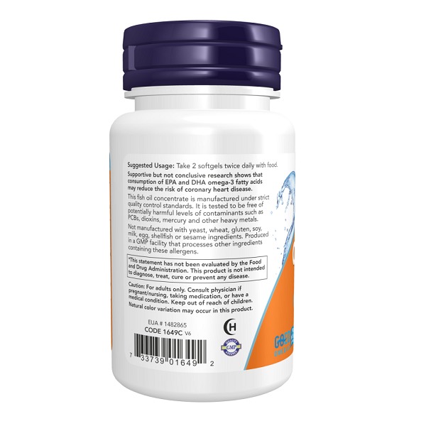 کپسول امگا 3 برند NOW حاوی EPA و DHA استخراج شده از روغن ماهی خالص میباشد که برای سلامت قلب، کاهش التهاب و پشتیبانی از سلامت عمومی بدن بسیار ضروری هستند. این محصول در بستهبندی 200 عددی عرضه شده و گزینه ای مناسب برای مصرف روزانه و مستمر است. همچنین این مکمل برای اطمینان از ایمنی و کیفیت، از نظر آلودگیهای فلزی مانند جیوه، PCB و دیوکسینها آزمایش شده است.
