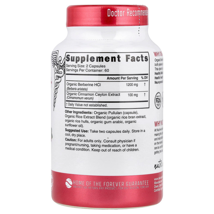 کپسول بربرین پلاس دارچین سیلان ارگانیک نوتری ۱۳۰۰ میلیگرم – Nutri Certified Organic Berberine+ Ceylon Cinnamon (۱۲۰ کپسول گیاهی)